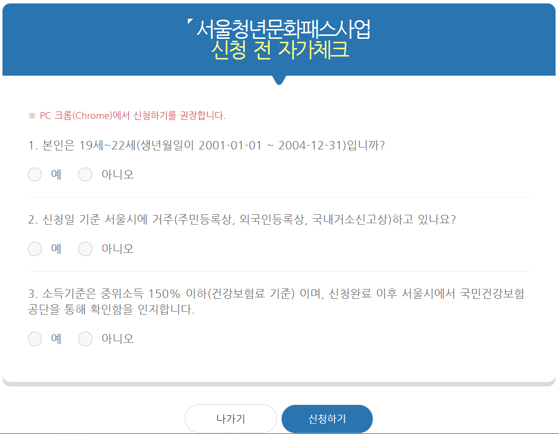 - 신청 방법 : 청년몽땅정보통 접속 -> '서울 청년 문화 패스' 온라인 신청 및 접수